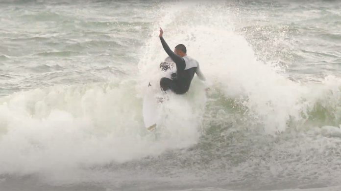 オンショアの決して良くない波であるにもかかわらず、さすがの一言に尽きるハイレベルなライディングの数々は、大澤伸幸がレジェンド・シェイパー小川昌男氏とタッグを組んで立ち上げた新しいサーフボードブランド”awing surfboards”に乗っているからこそ。