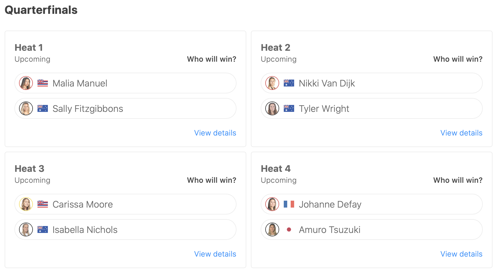 迎えるクォーターファイナルのヒート4ではJohanne Defayと対戦予定。