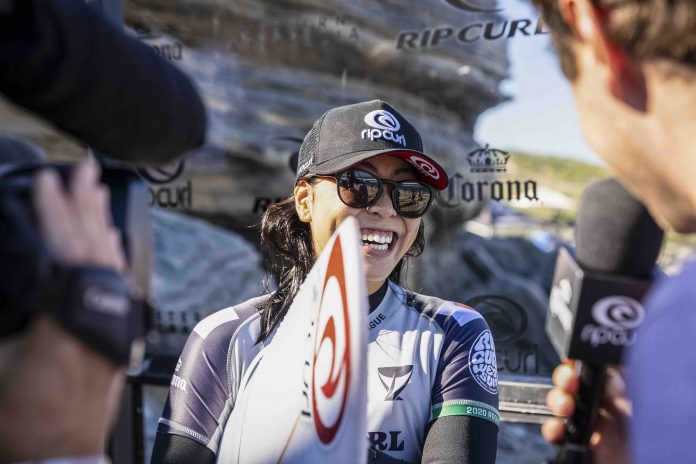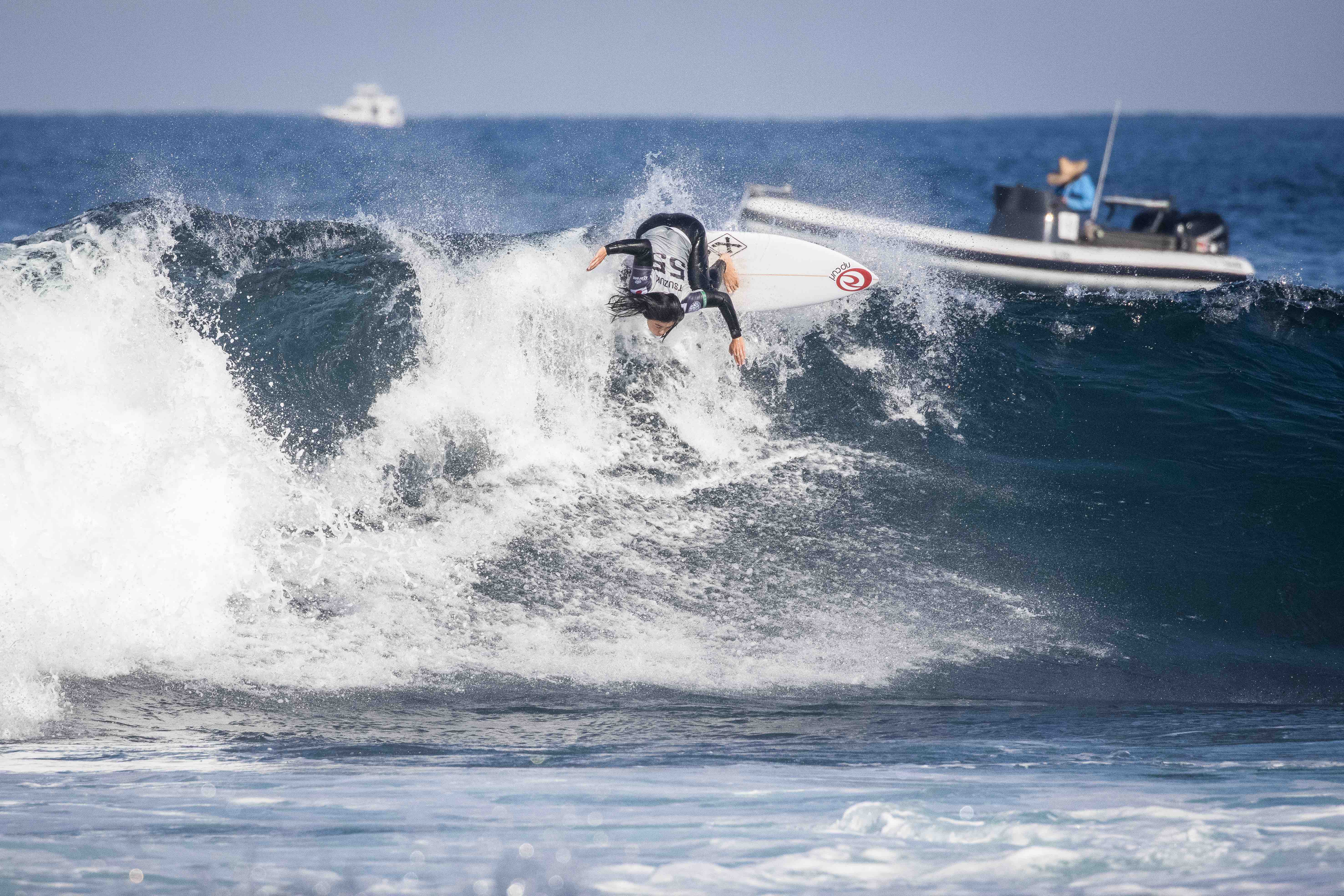 数年間に渡ってワールドタイトル争いに絡む無冠の女王と呼ぶにふさわしいトップオブトップのCourtney Conlogueを相手に、パワフルかつソリッドなバックサイド・リッピングを連発して6.00ptをまとめると、7本目に掴んだセットの波でダイナミックなバックサイド・リップ2発を入れ8.33ptのエクセレントスコアをマーク!!
