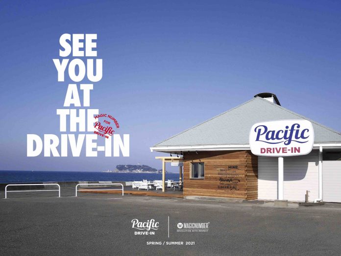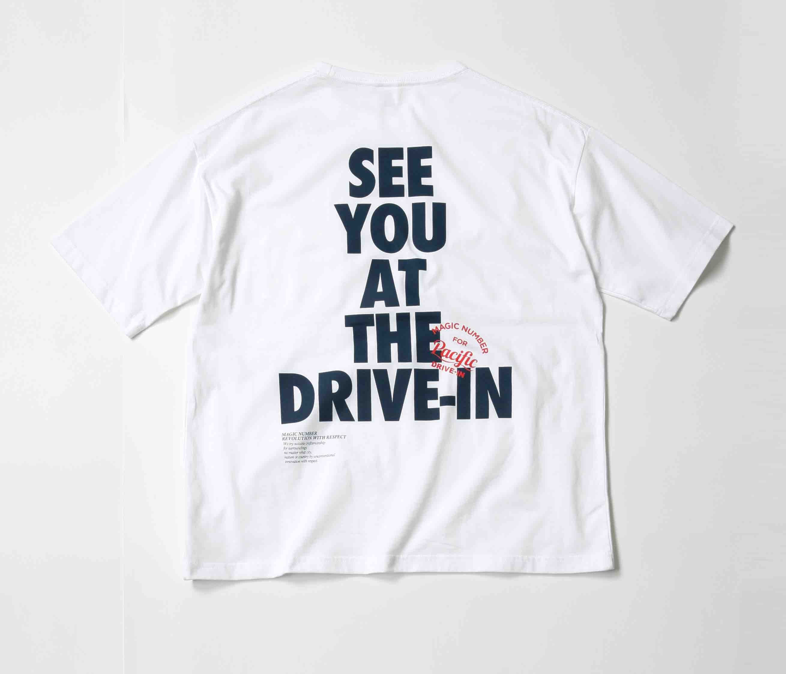 MAGIC NUMBERの今シーズンのテーマ “SEE YOU IN THE WATER (海で会おう)”をPacific DRIVE-IN別注オリジナル”SEE YOU AT THE DRIVE-IN”で仕上げた斬新なデザインが目を引く様々なアイテムを展開。