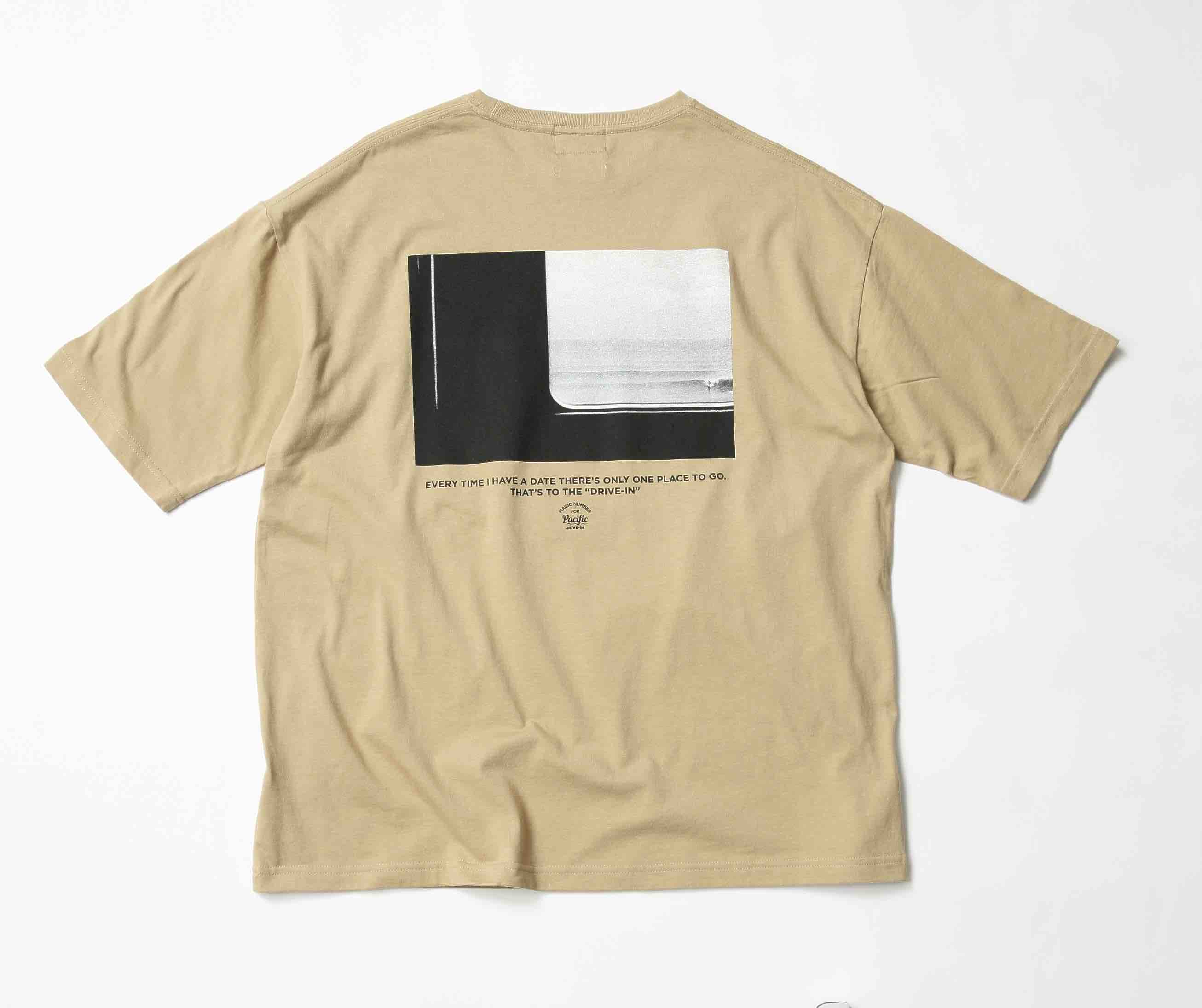5.6ozの適度な生地感と、ユニセックスで着用可能なルーズフィットのTシャツ。左胸にはコラボレーションならではの両ブランドのロゴをプリントし、バックにはPACIFIC DRIVE-INの店舗にも飾られている志津野雷氏の江の電からみた印象的な写真をON。両者に縁のある志津野氏の写真がコラボレーションの親和性を感じさせてくれる1枚。