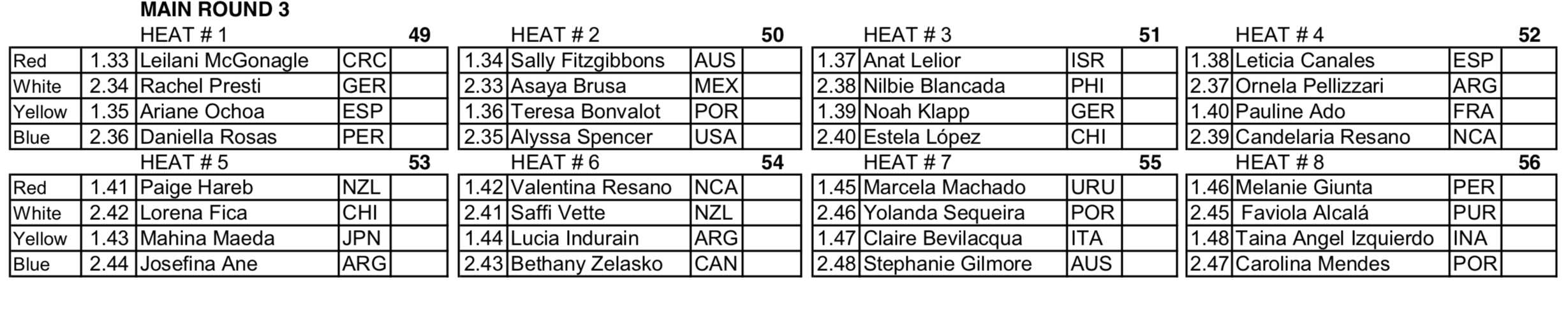 女子R3 ヒート表