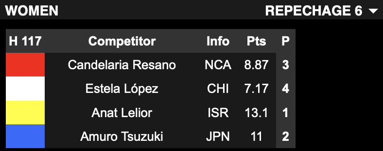 WOMENSメインラウンドを勝ち上がっていることからこの日は行われなかった前田マヒナは、メインラウンド5のヒート1でTeresa Bonvalot、Pauline Ado、Yolanda Sequeiraと対戦予定となっている。