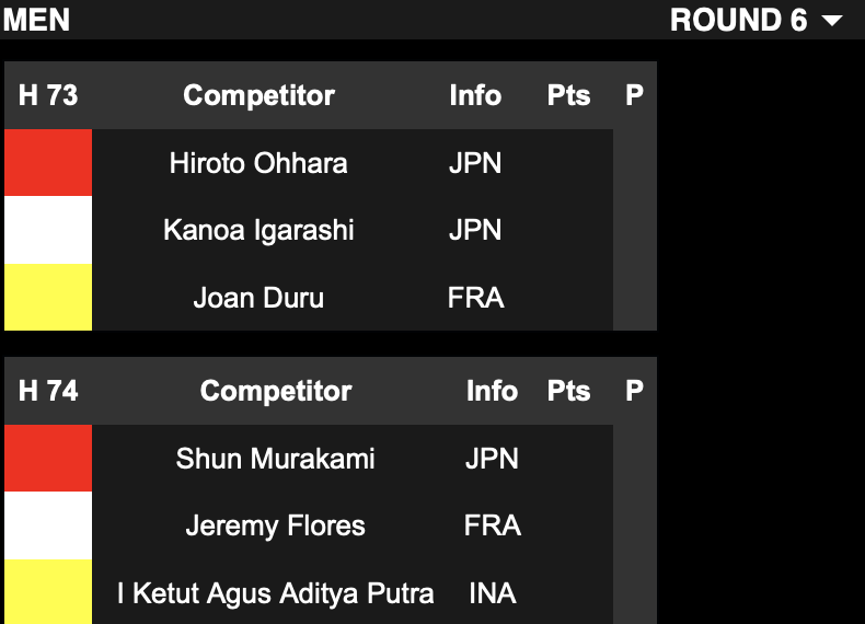 迎えるメインラウンド6ではヒート1で大原洋人と五十嵐カノアが同じヒートに組み込まれ、元CTサーファーのJoan Duruと対戦。