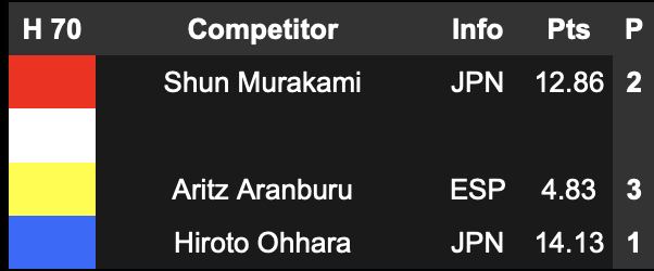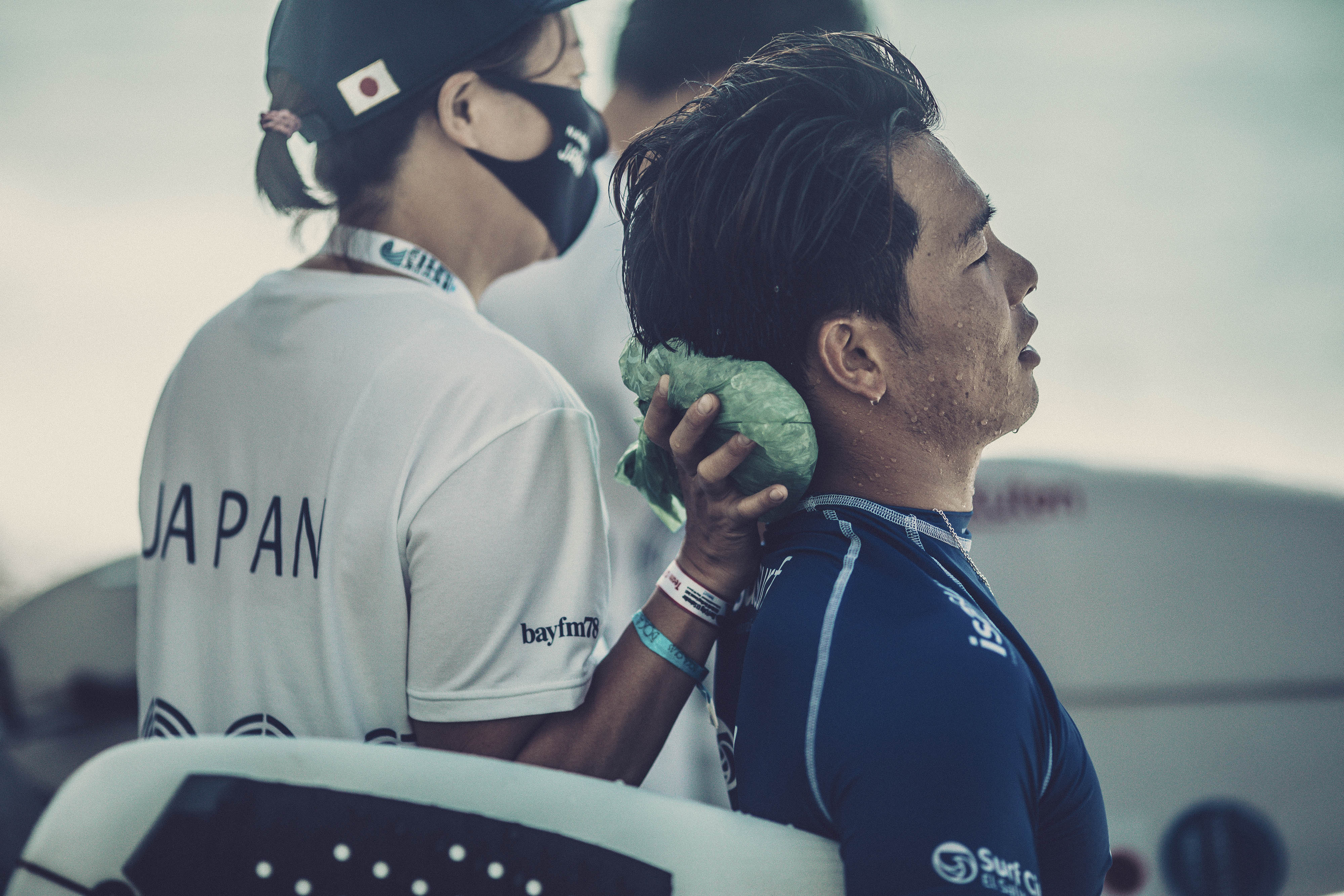 注目の日本代表選手たちの活躍は、メインラウンド5のヒート1で同じヒートに組み込まれていた村上舜と大原洋人がAritz Aranburuを抑え、大原洋人1位、村上舜2位というポジションで見事2名ともにラウンドアップを果たした!