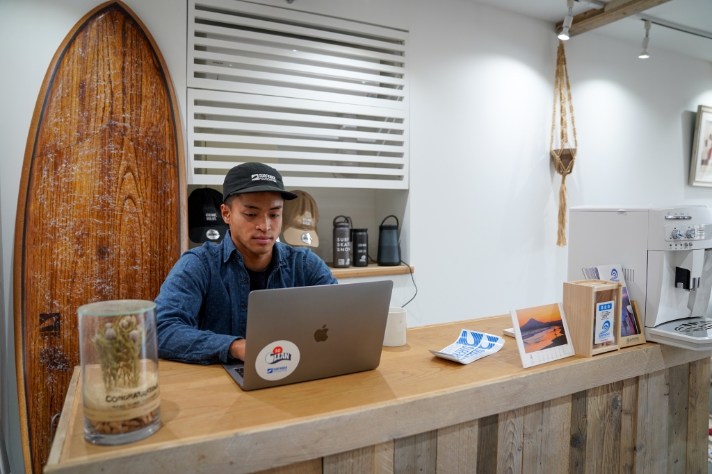 新しくサーフライダーファウンデーション・ジャパンの事務局長に就任した石川拳大。サーファーとして初となる企業アスリートのキャリアを生かして、今後、サーフライダーファウンデーションの運営に尽力していく。20代という新しい世代の発想とアイデアが、組織に新風を巻き起こすことを期待されている。