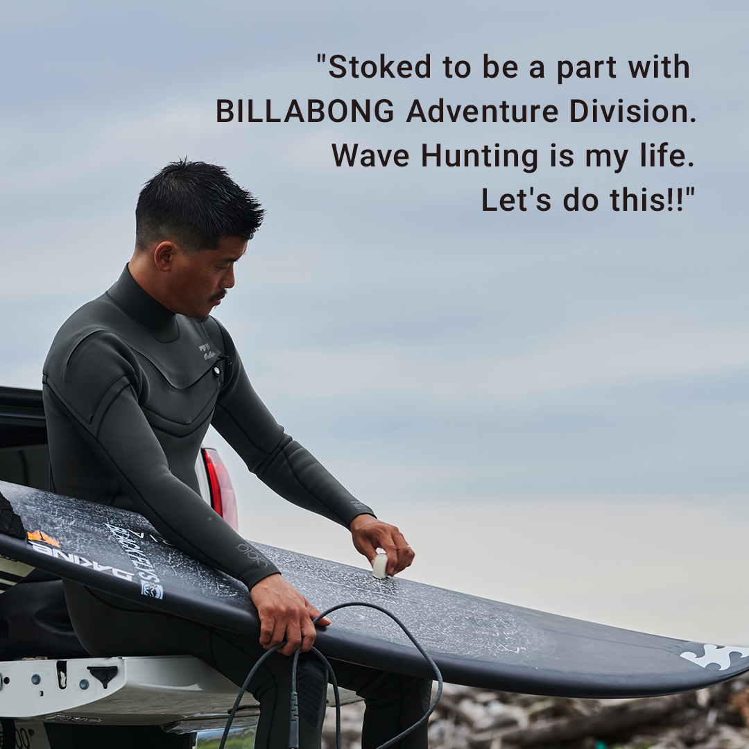 そんな彼がやり続けている、未開の波から強烈なスラブ系チューブ波を求めて日本各地をウェイブハントするムーブメントと、BILLABONGがこれから巻き起こしていく化学反応に注目していきたい!!