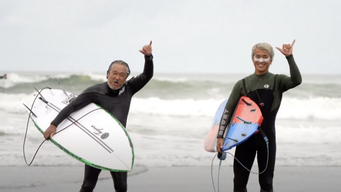 ちなみに今回ふたりが使っているサーフボードはJustice surfboardsの田嶋三男シェイプの”イッツセンス”モデルの6’5”から6’7”のミッドサイズ。