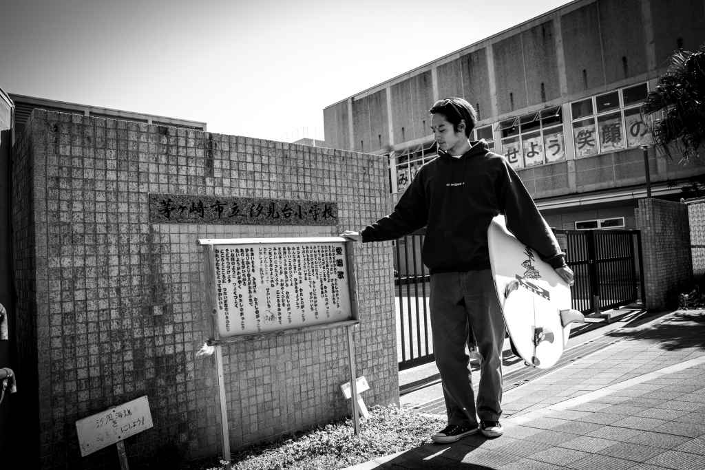 海はサーファーだけのものではないので、地域の方々に不快な思いをさせてはいけないと思います。とても残念な結果ですが、あの小学校の3年間の経験は素晴らしい思い出です。先生からは、大人にプレゼンするために、コミュニケーション能力を高めることの大切さを教えていただいて、それが今でも役に立っていると思います。地元サーファーとしては、若い世代の僕達が以前のポイント名を使わないようにしていくことが大切だと考えています。「今日、汐小前の方は波いいよ」とか。クチコミでどんどん広めていきたいです。