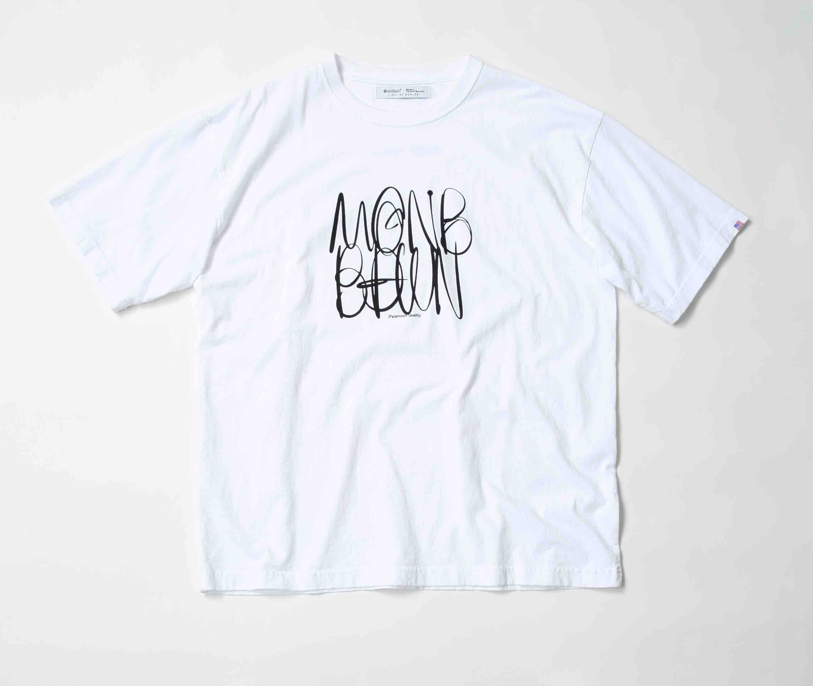 凹凸感のある独特な風合いが魅力のUSコットンを使用したS/S Tシャツ。フロントにはペンライト アートをモチーフにした両ブランドのロゴをプリントし、コンセプトを体現したデザインに。仕上げ にガーメントウォッシュを施し、適度にこなれた雰囲気も魅力。コラボレーション用に作られた オリジナルのネームラベルがコラボレーションをさり気なく主張している。