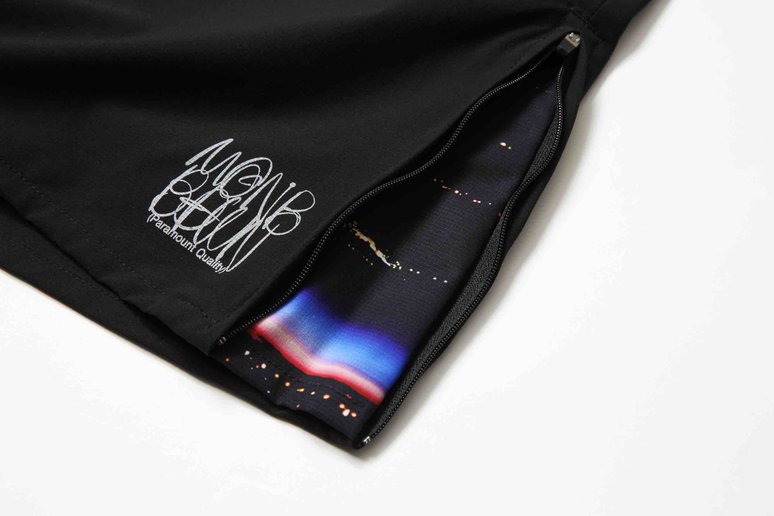2WAYストレッチ、耐塩素性に優れた快適性の高いMoveFitという機能素材を使用したハイブリッド ウォークショーツ。生地はリップストップになっており軽くてストレスフリーながら耐久性の高さも ポイント。両サイドの裾にはZIPが付いており、開くと内側からオリジナルの総柄パターンがチラリと 覗くギミックのある仕上りに。こちらは好みに合わせてシルエットを調整する事も可能。また内股の 縫い目がない独特のパターンにより、股擦れも軽減。ポケット部分には水抜きのメッシュの切替も 施し、文字通り水陸両用のマルチなアイテムに。街でも海でも使用する事は可能な仕様で今回の コンセプトを体現したモデル。