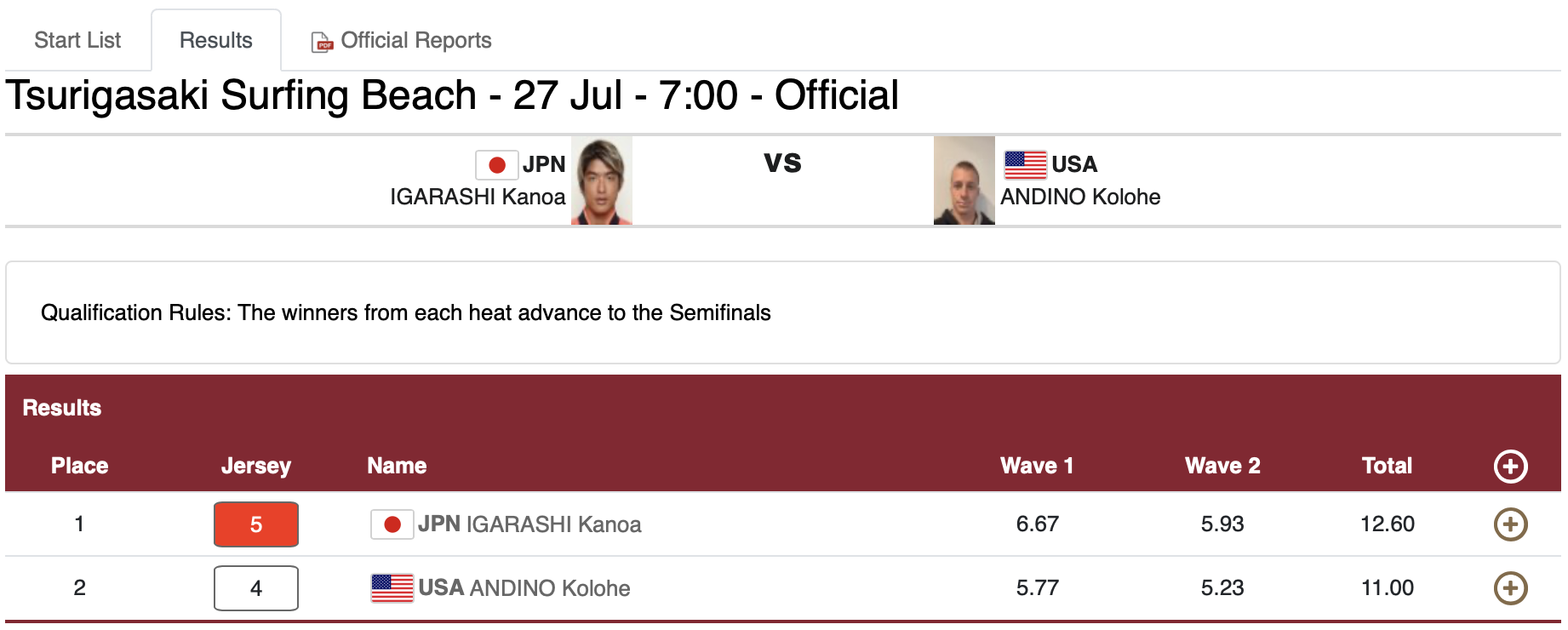 五十嵐カノアに引き続き、セミファイナル進出を決めてくれることに期待したい!!