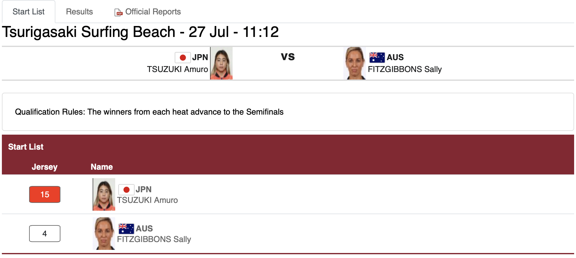女子ではクォーターファイナルのヒート4で都筑有夢路がSally Fitzgibbonsと対戦予定。