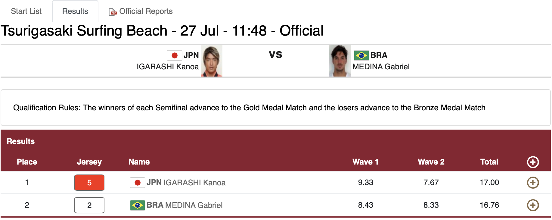 ファイナルではブラジル代表でワールドチャンプのItalo Ferreiraと対戦予定。