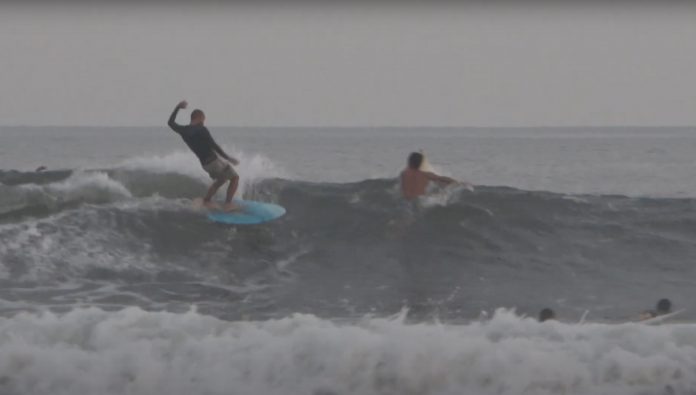 東京オリンピック開催中の千葉に季節外れのダブル近いパワフルな波を届け、世界中が心配していた小波とは180度違った見応えあるハードコンディションをもたらしたこの神風的な台風8号のグランドスウェルは、湘南にも届けられ、某サンドバーには肩前後の大き過ぎないロングライド可能なファンなグーフィーが出現!