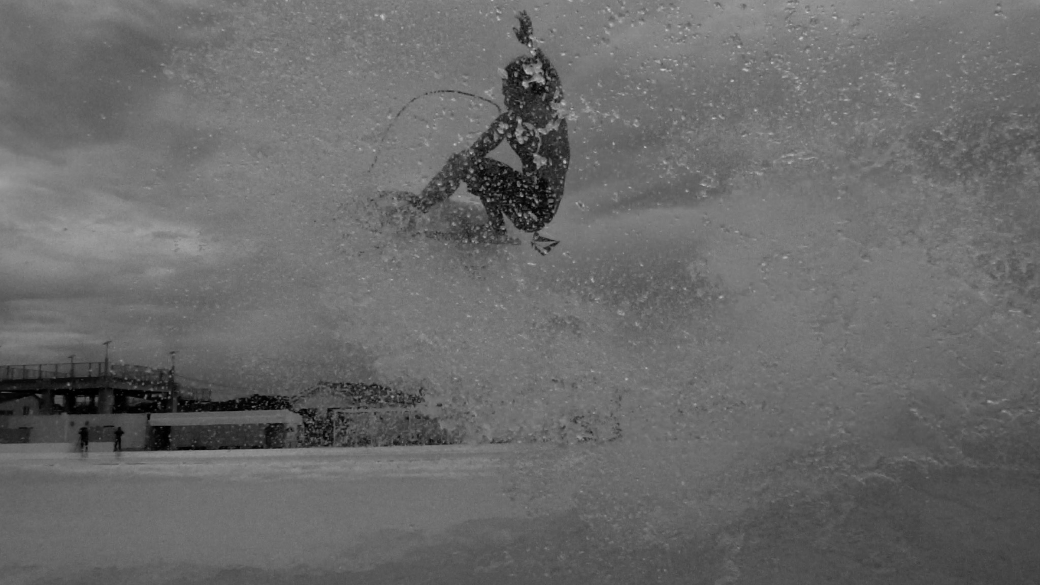 ウェッジ・ポップという名前のエア専用の波で、あり得ない高さのダブルグラブ・ビッグエアからパーフェクトなアーリーウープまで披露してくれた辻裕次郎。