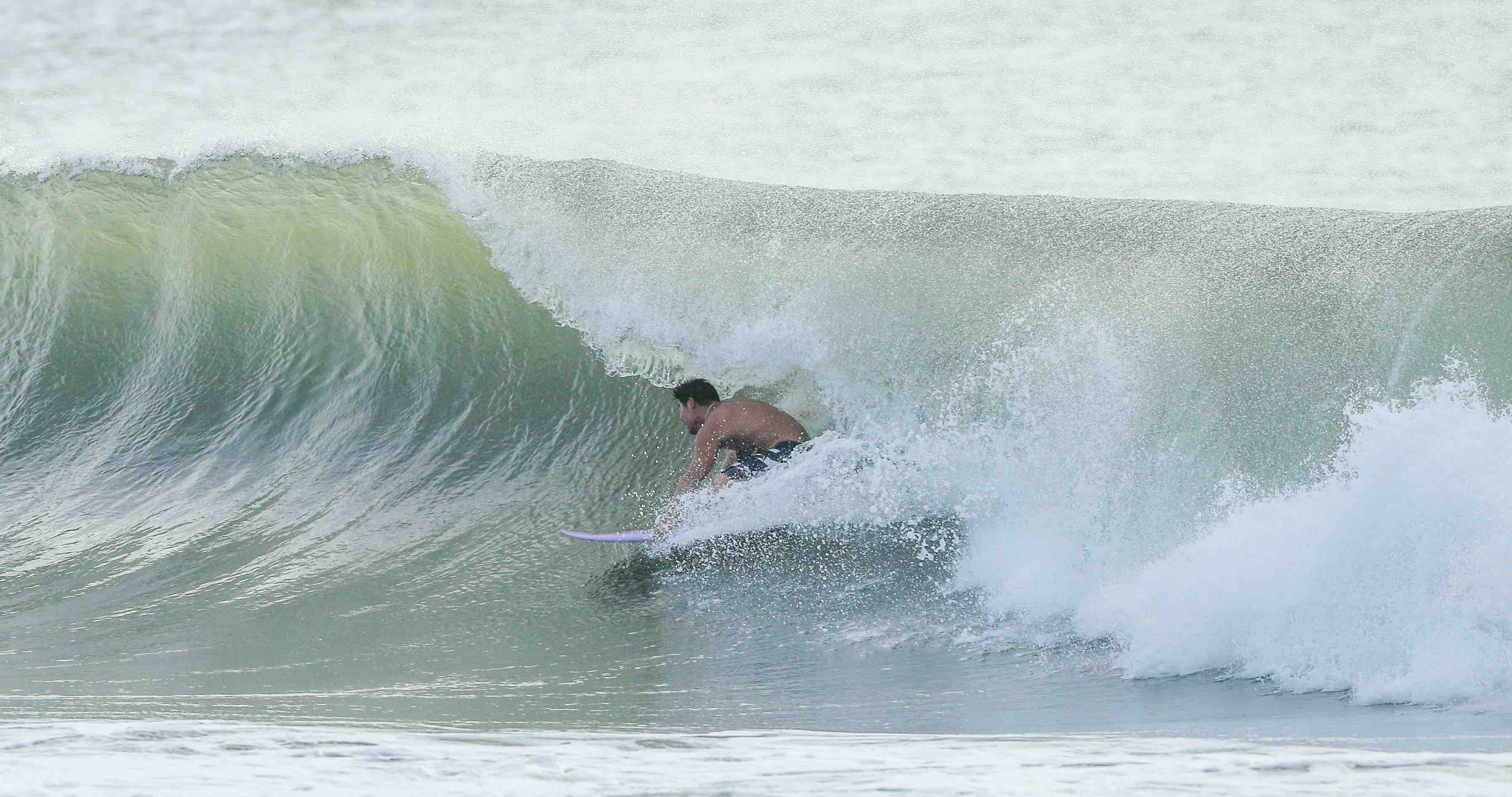 記録的な豪雨により千葉の各地に災害をもたらした台風10号の通過と、間髪入れずに接近中の台風9号による影響で頭前後でオフショアのチューブありなグッドコンディションに恵まれた8/9(月)の千葉エリア。