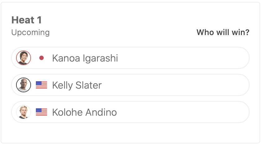 注目の日本人選手は、五十嵐カノアはヒート1でKelly Slater、Kolohe Andino、Connor O’learyはヒート10でRyan Callinan、Leonardo Fioravantiと対戦予定。