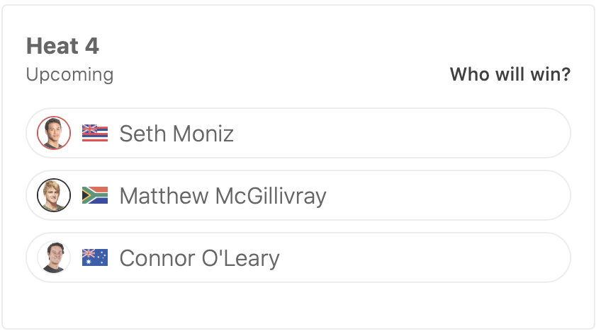 迎えるラウンド2のヒート4ではSeth Moniz、Matthew McGillivrayと対戦予定となっている。