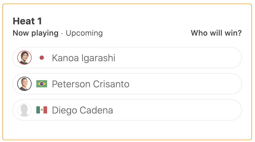 迎えるラウンド2のヒート1ではPeterson Crisanto、Diego Cadenaと対戦予定。