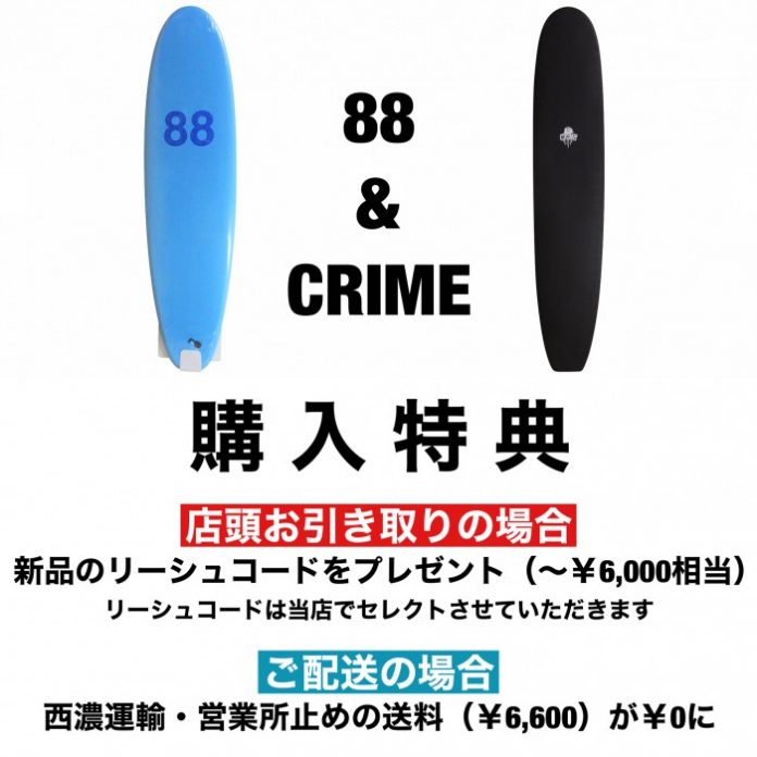 即売り切れで品薄となっている超絶人気のソフトボードCRIMEと88 Surfboardsの2021年最新モデルを、こだわりのアイテムのみを取り扱うSTANDARD STOREが再入荷!!