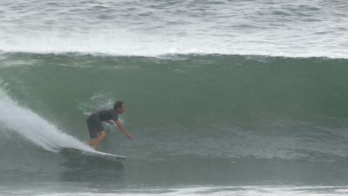 VOLCOMトッププロライダーでもあるそんな彼が日本一のビーチブレイク仙台新港でオーバーヘッドのグッドコンディションをスコア!!