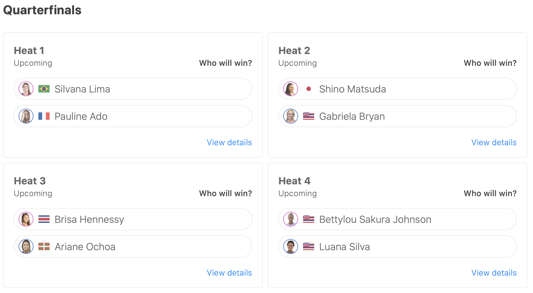 松田詩野がクォーターファイナルのヒート2でGabriela Mryanと対戦予定となっている。