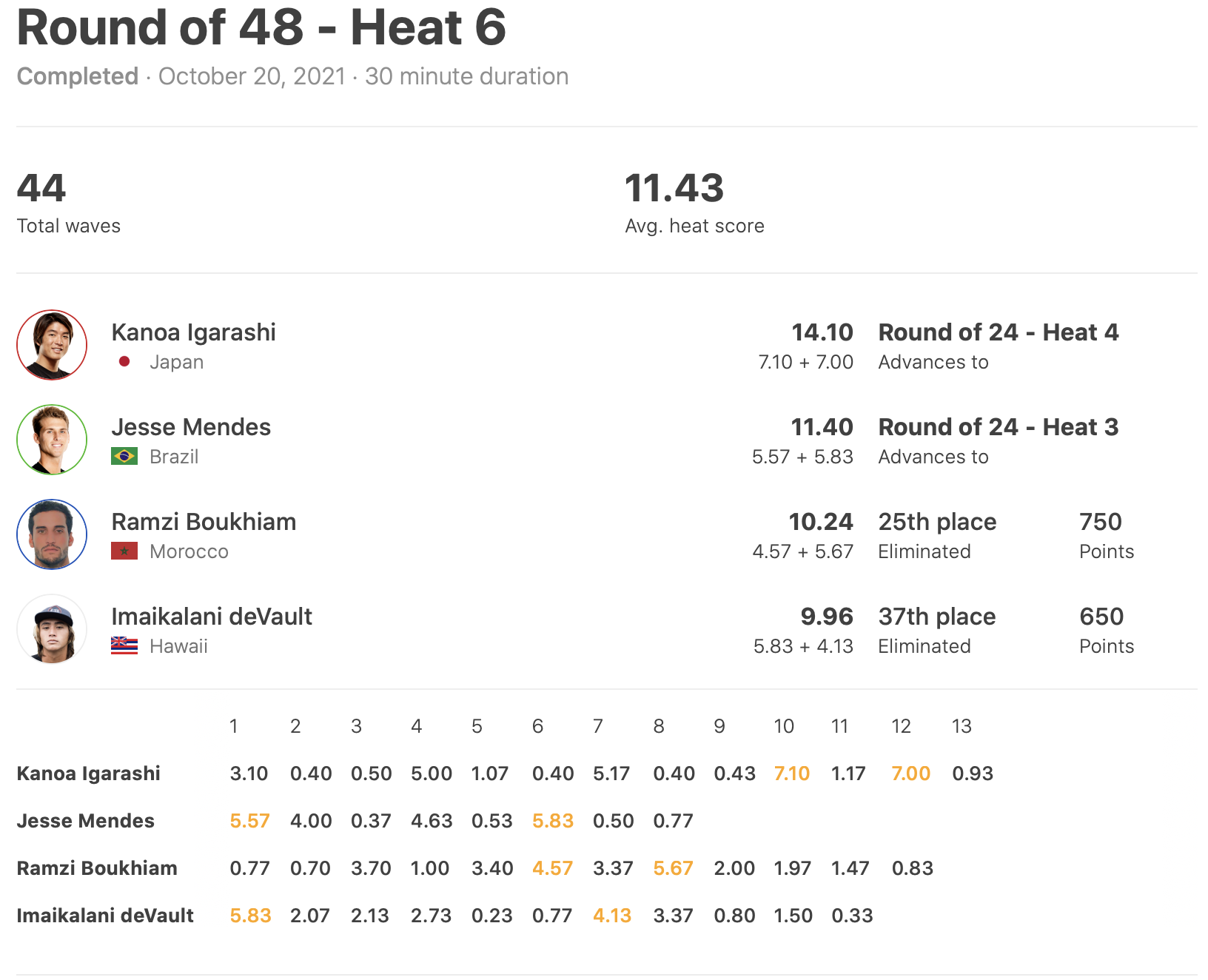 注目の日本人選手の活躍は、ダントツのサーフィンで1位通過を果たした五十嵐カノアがラウンドオブ24進出!