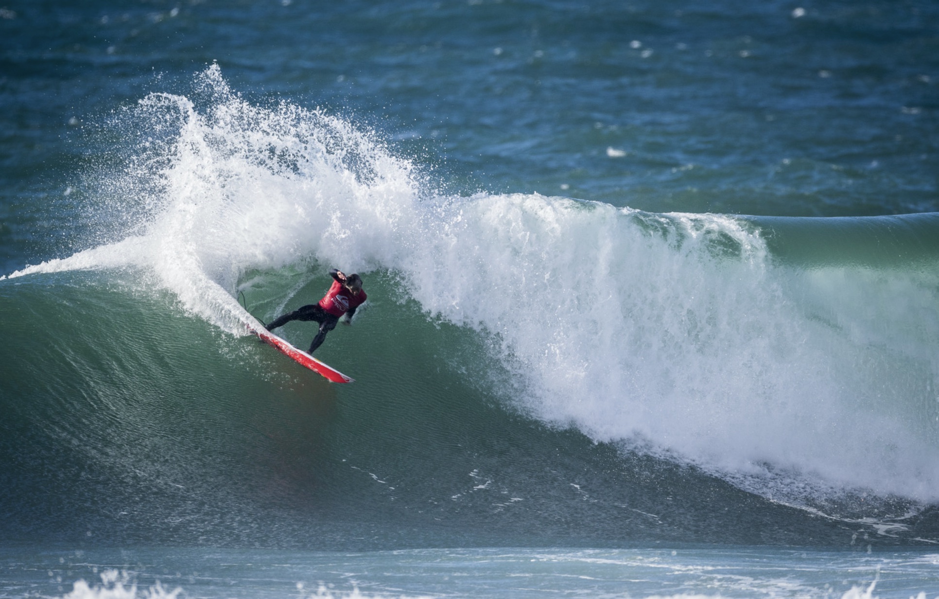 フランスのホセゴーを舞台に開催中のCS第3戦”QUIKSILVER & ROXY PRO France”は、現地時間と日本時間の10/22(金)にコンテストDAY4が行なわれ、オンショアのハードコンディションに対応するべくジェットスキーを稼働させる形でMENSラウンドオブ24のみを消化。