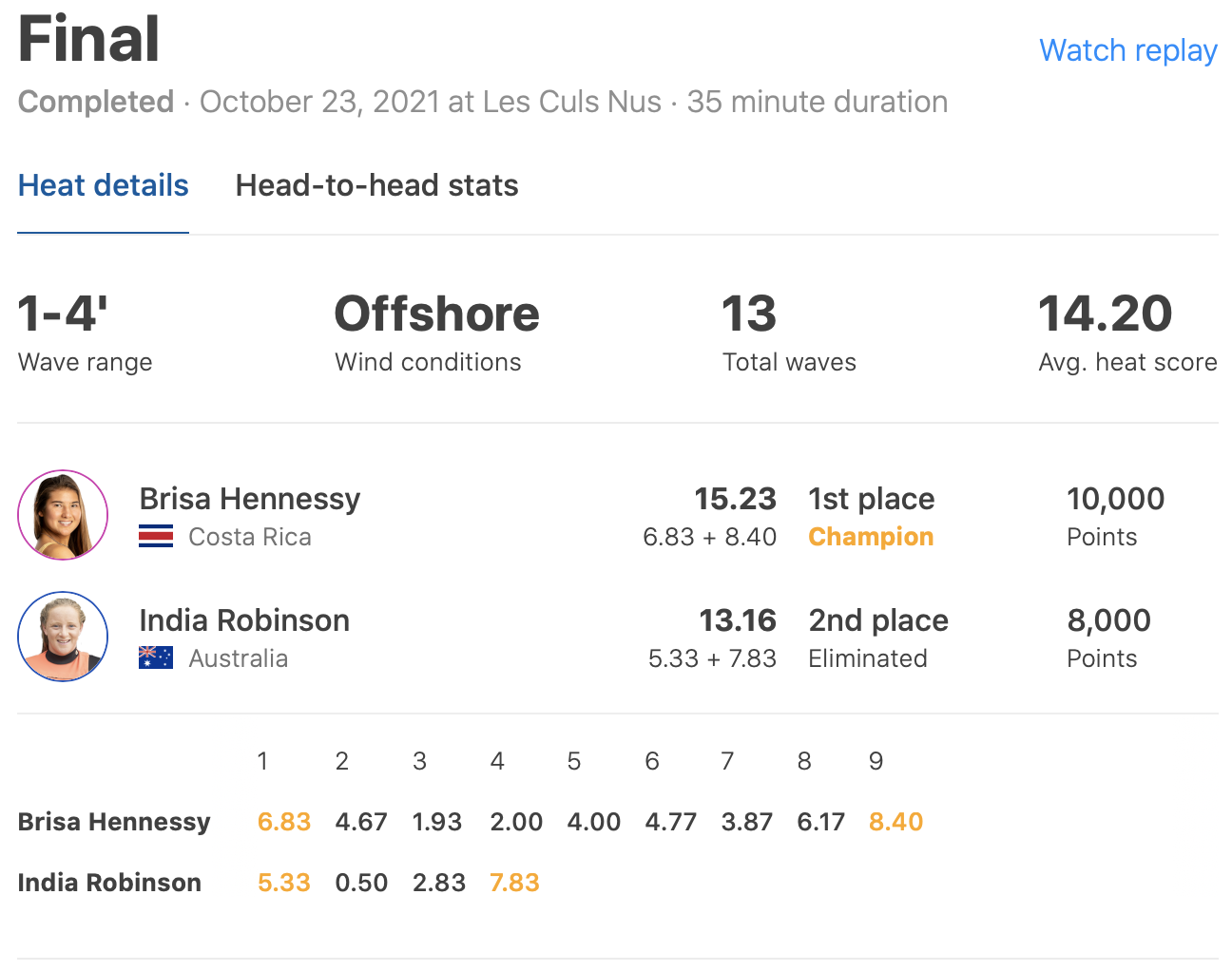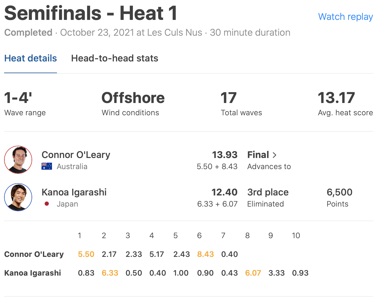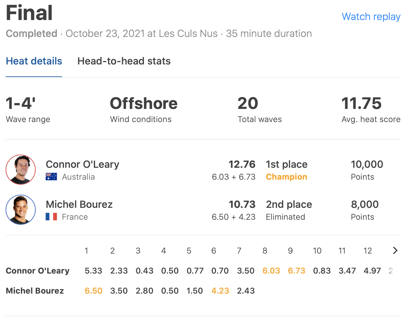 また、五十嵐カノアをセミファイナルで破ったConnor O’learyは、ファイナルでMichel Bourezと対戦。