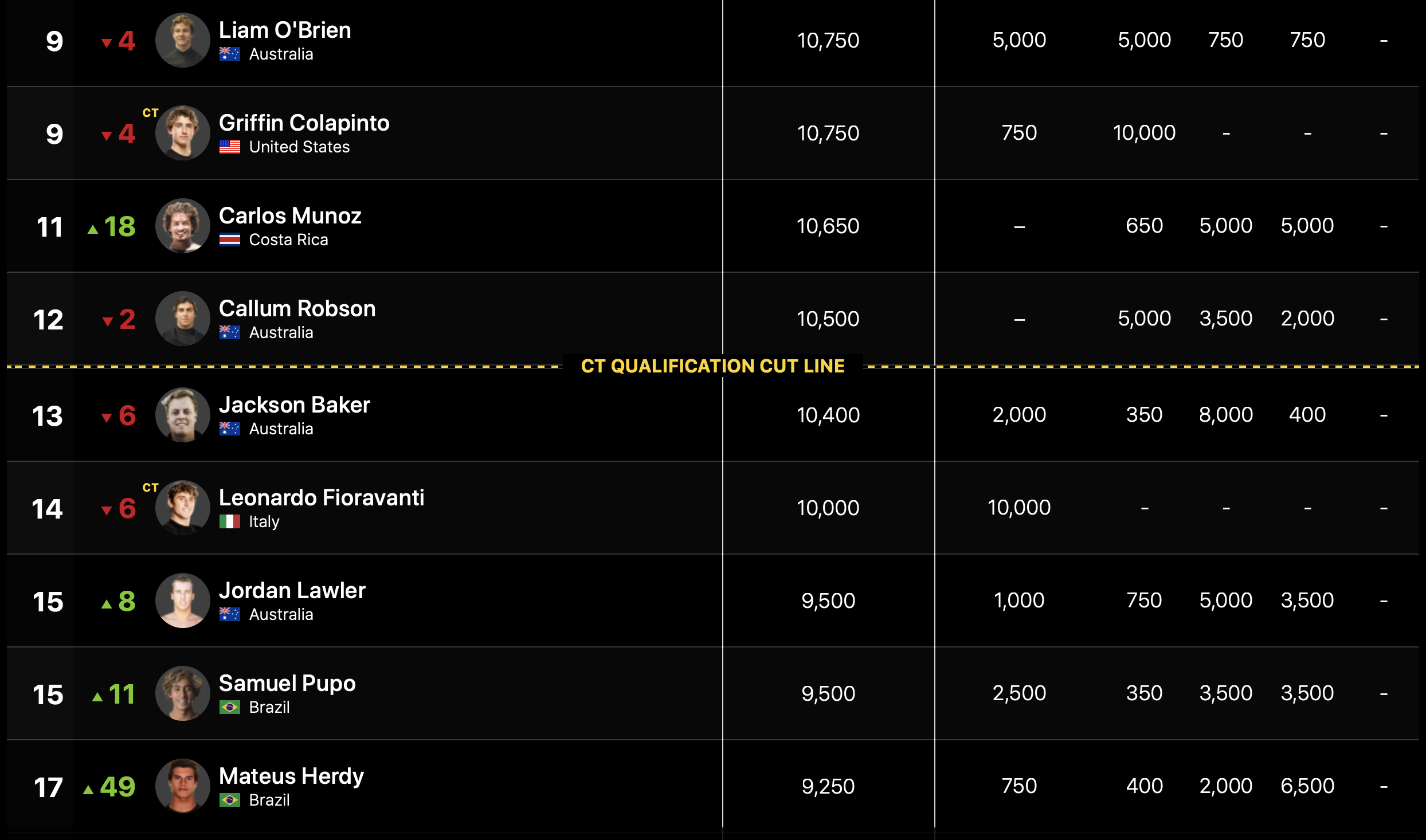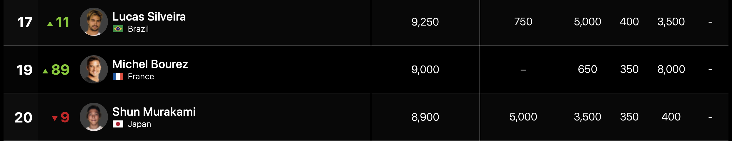 また、現時点で村上舜が20位、大原洋人が33位となっている。