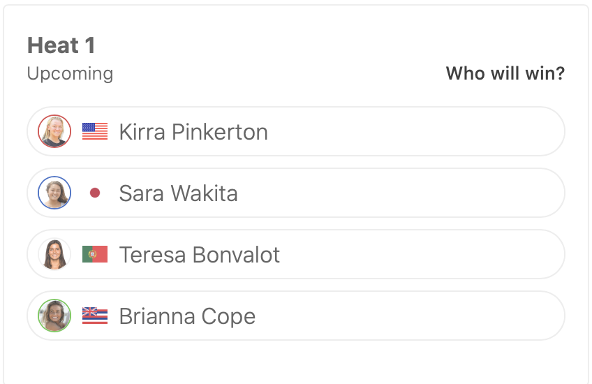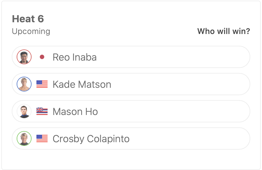 歴代グランドチャンプ柄沢明美プロの息子で元CTサーファーのConnor O’learyと、日本とインドネシアのハイブリッドサーファー和井田理央も含めたスケジュールは下記の通り。