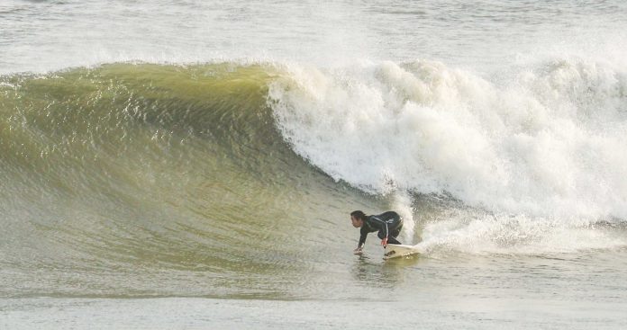東海上へと抜けていった前線を伴った低気圧の影響により、頭前のオフショアのグッドコンディションとなった千葉の某所。