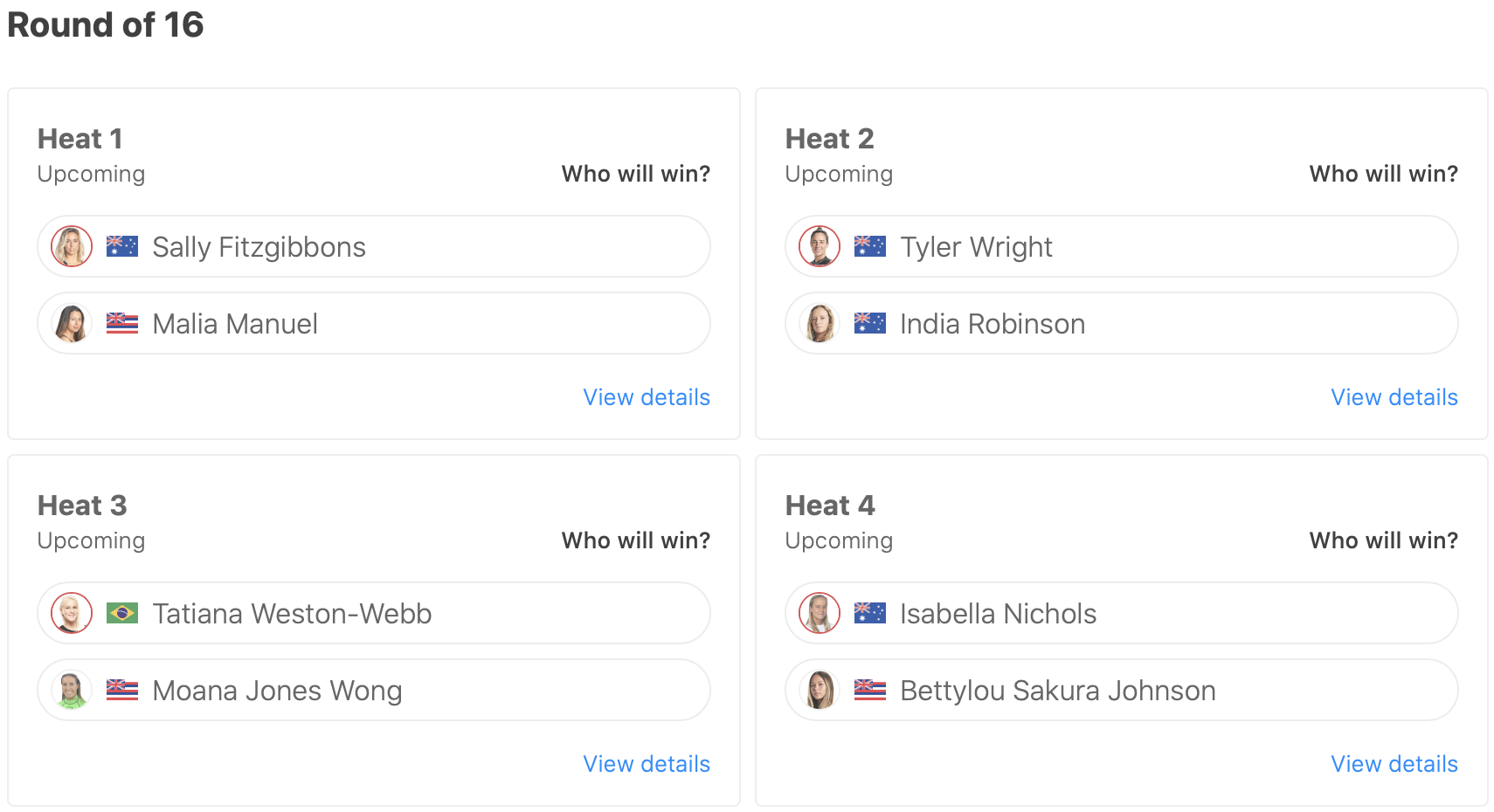 はやくもベスト16の選手が出揃ったラウンドオブ16のヒート表は下記の通り。