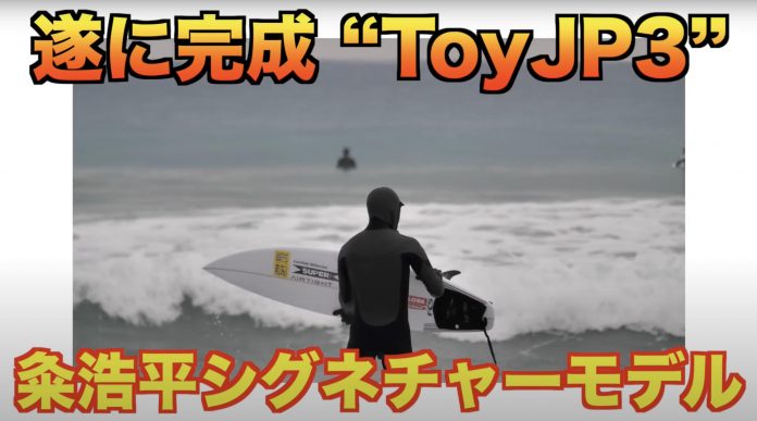 今回の作品では、いよいよ完成を果たしたSUPERbrand surfboardsよりリリースの粂浩平シグネチャー・モデル”Toy JP3”を初公開!