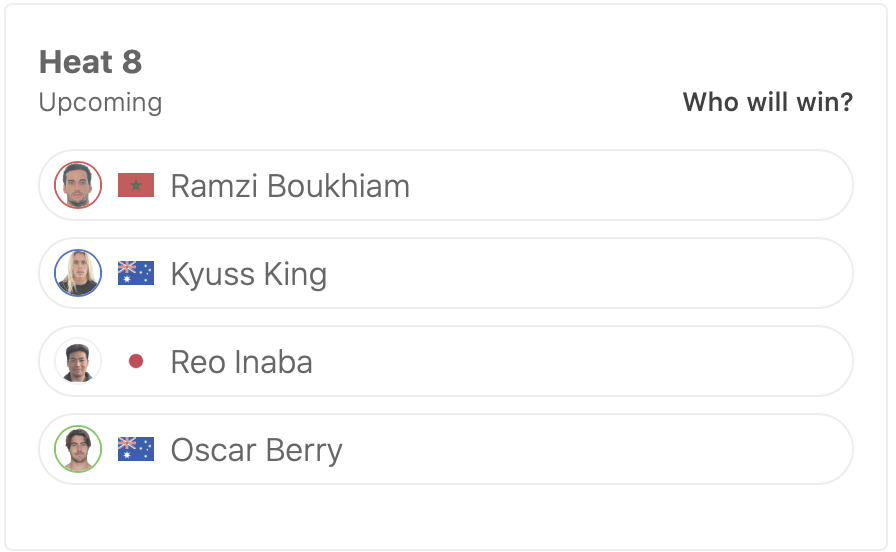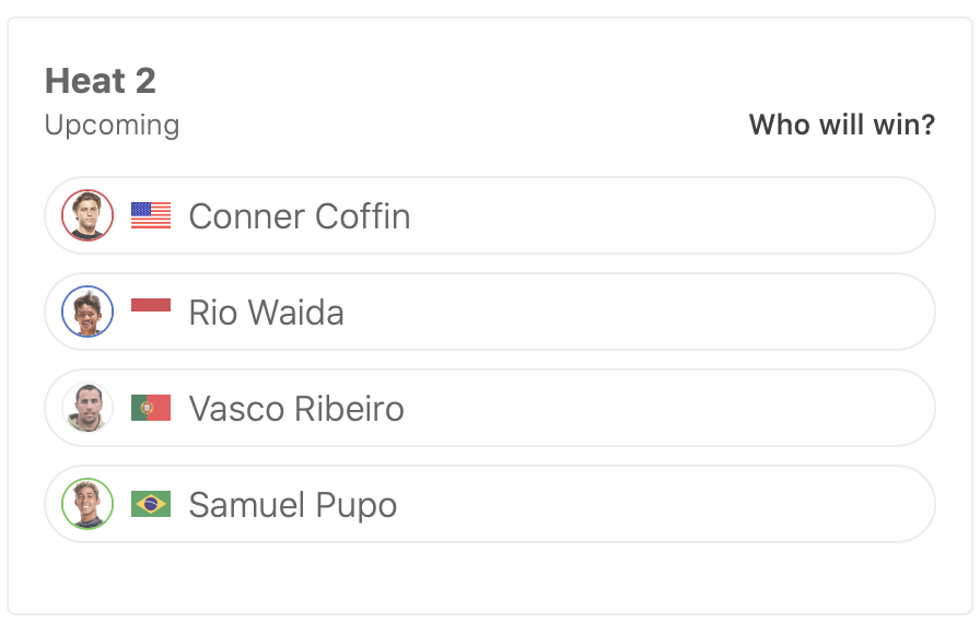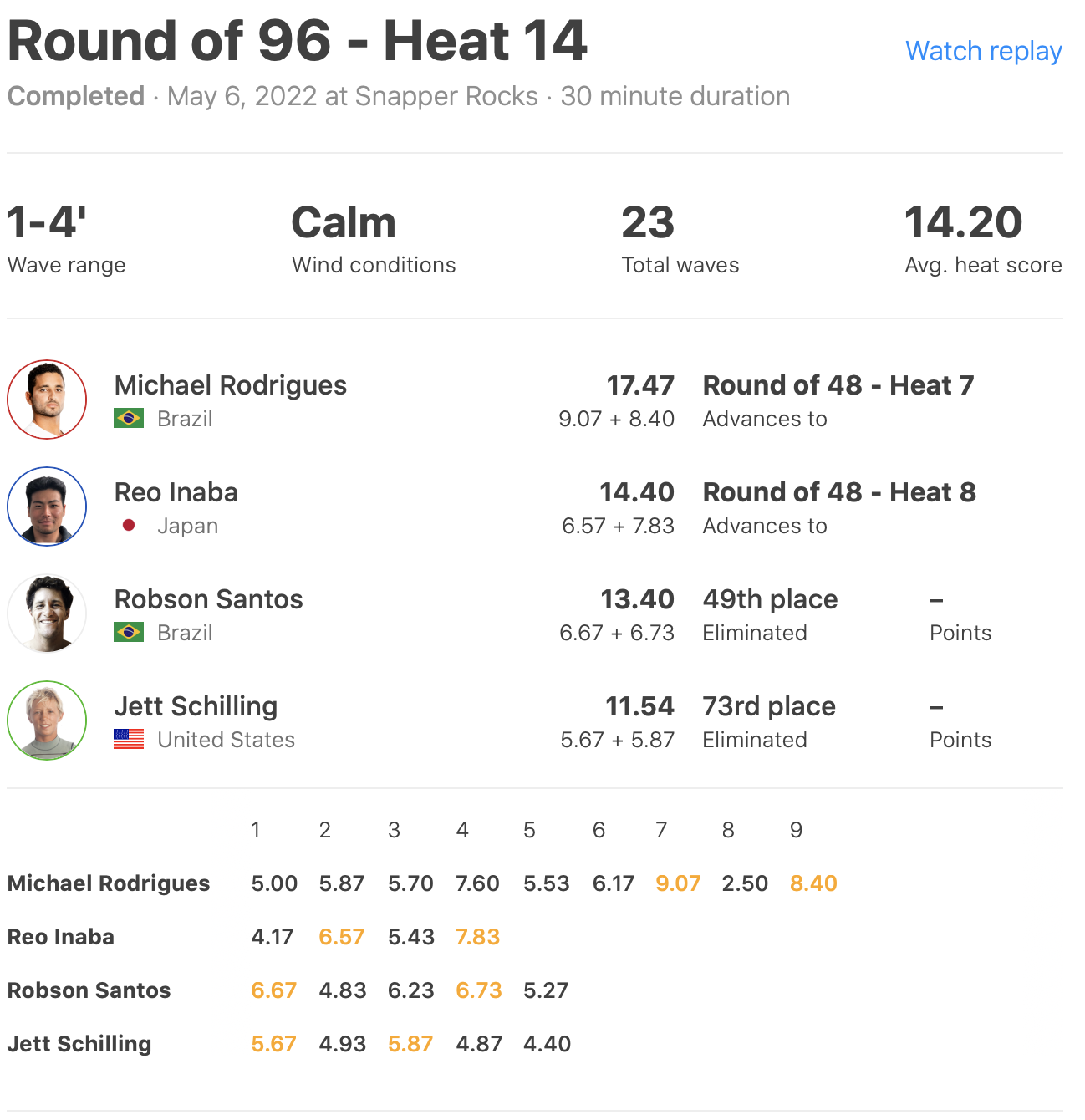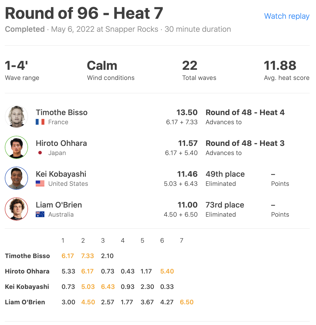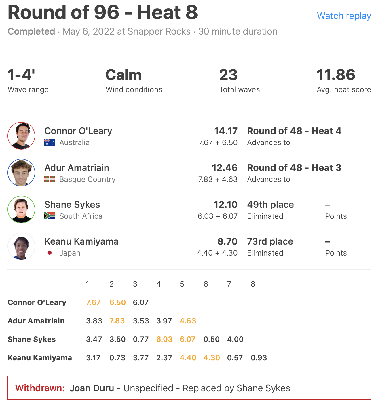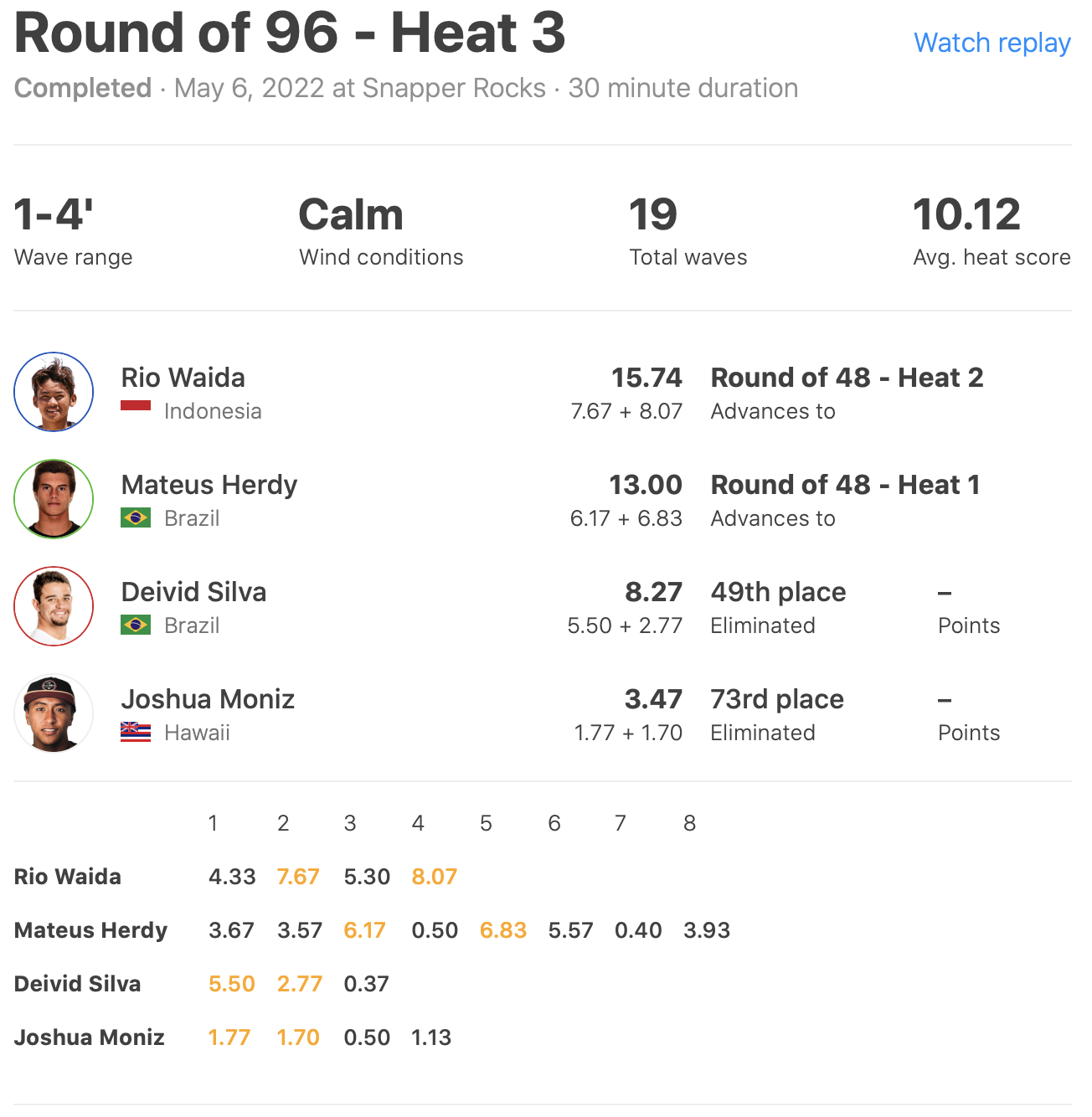 迎えるラウンドオブ48ではヒート2で和井田理央がConner Coffin、Vasco Ribeiro、Samuel Pupoと対戦。