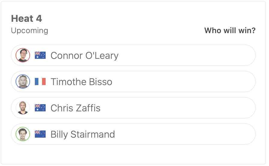 ヒート4ではConnor O’learyがTimothe Bisso、Chris Zaffis、Billy Stairmandと対戦。