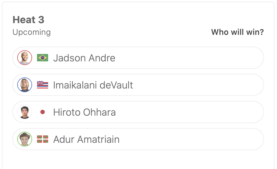 続くヒート3では大原洋人がJadson Andre、Imaikalani DeVault、Adur Amatriainと対戦。