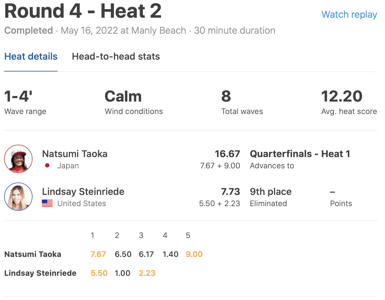 WSLオフィシャルサイト内のリポート記事やハイライト映像でも、この日の一番の話題として取り上げられるほどの大活躍を魅せ、クォーターファイナル進出を決めた!!