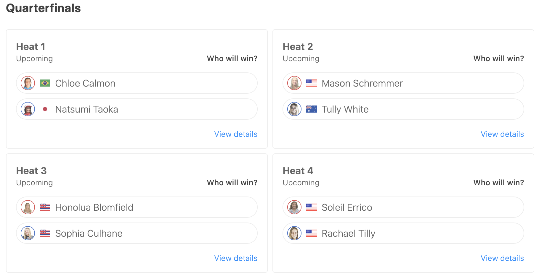 迎えるクォーターファイナルではヒート1deChloe Calmonと対戦予定。