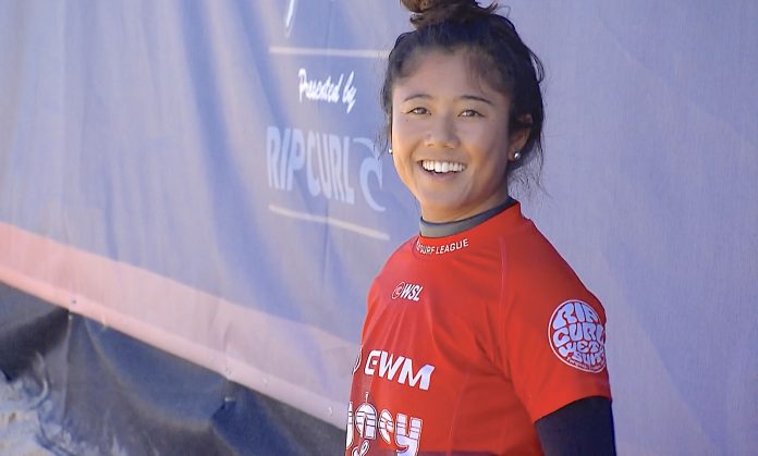 注目の田岡なつみはヒート2でカリフォルニア出身で2011年ASP WOMENSロングボード・ワールドチャンプであるLindsay Steinriedeと対戦。