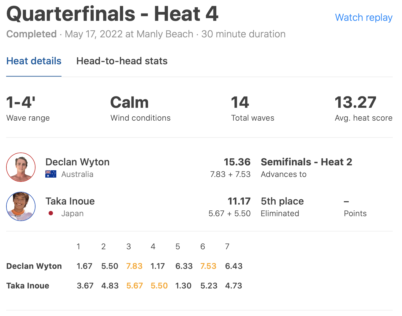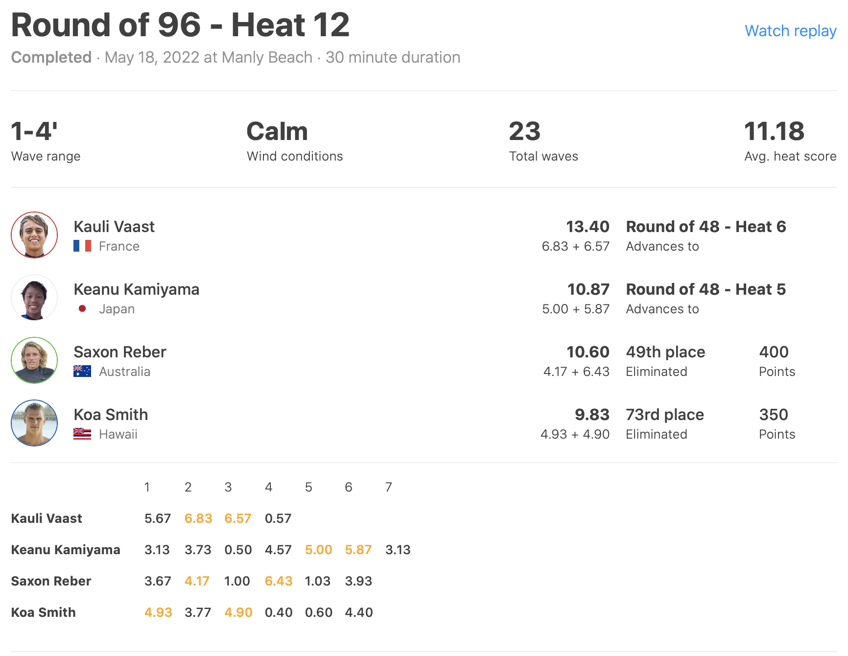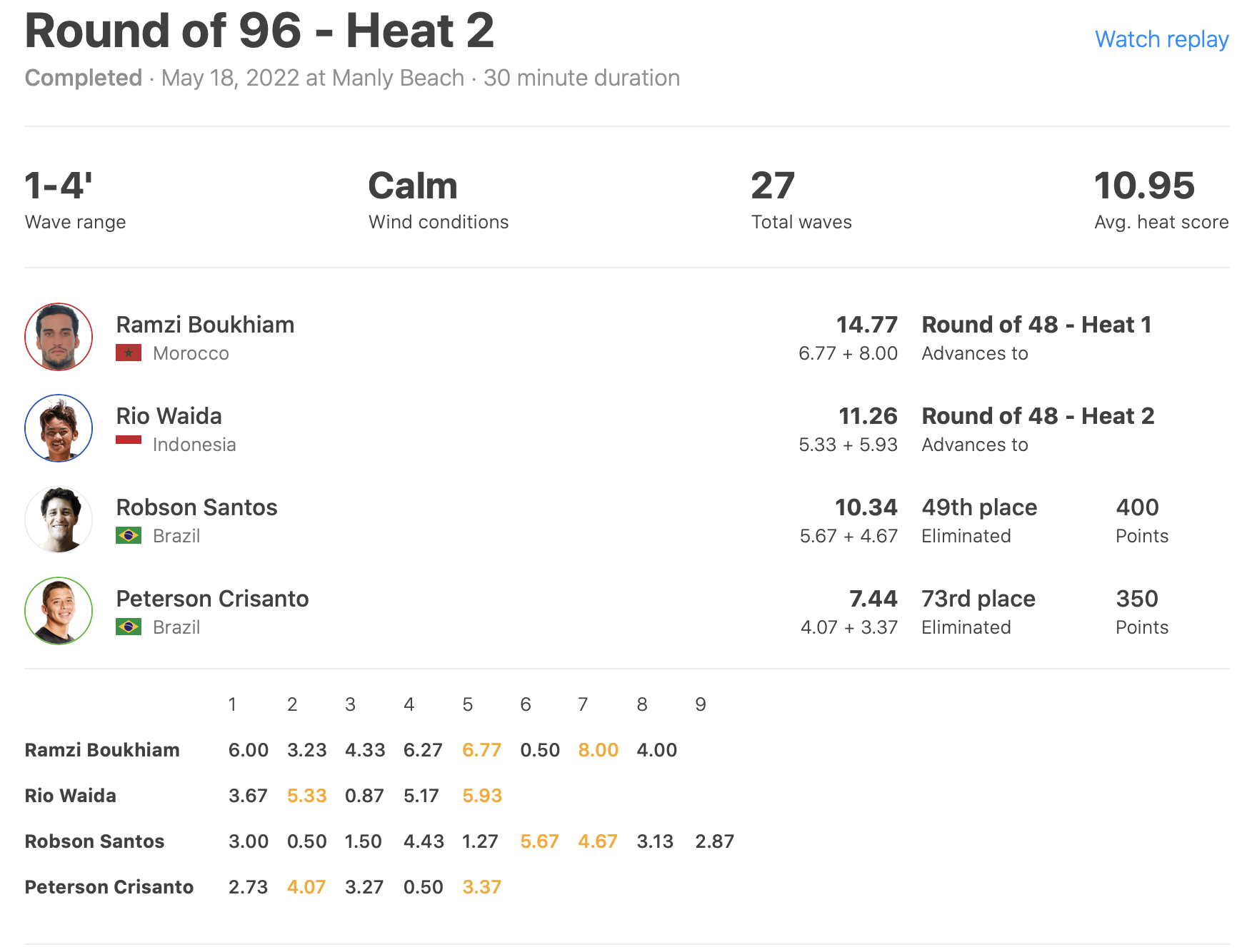 迎えるラウンドオブ48ではヒート5でBilly Stairmand、Maxime Huscenot、Jett Schillingと対戦予定。