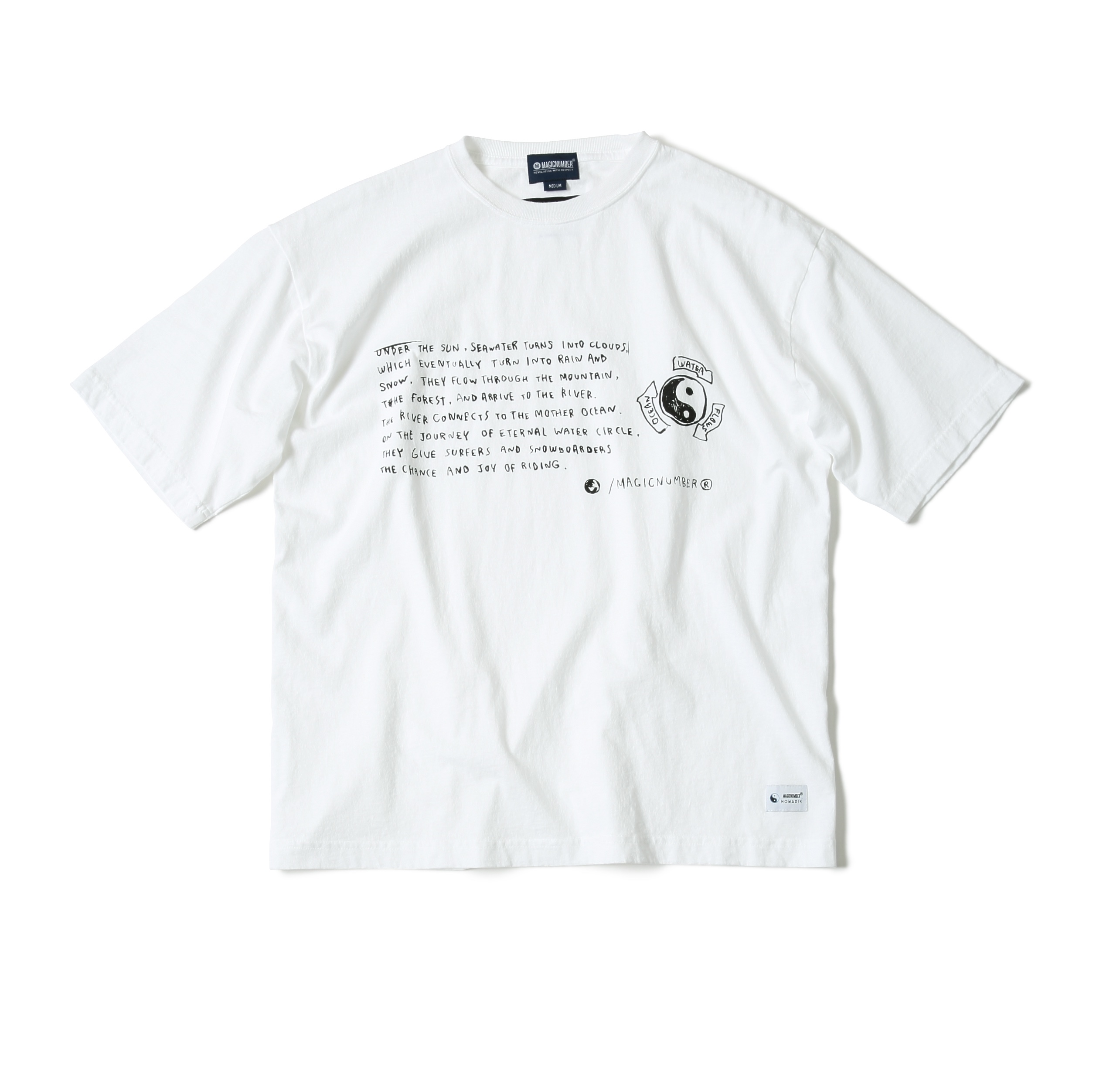 NOMADIKxMAGIC NUMBER US COTTON S/S TEEでは、フロント・グラフィックにコラボレーションのコンセプトをベースに工藤氏が今回の為に描き下ろした貴重なグラフィックを採用。