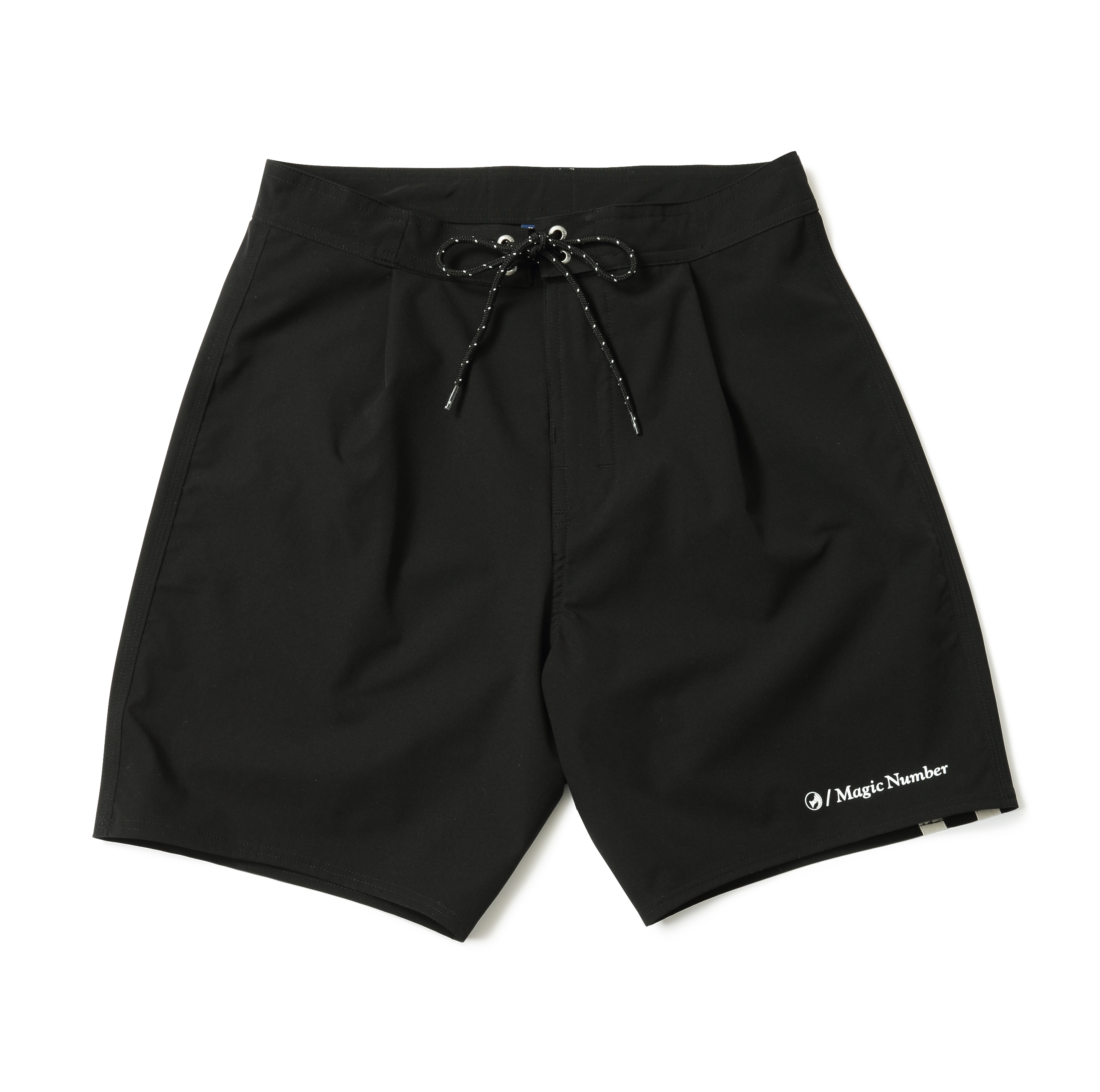 NOMADIKxMAGIC NUMBER THE SURFERS’ CODE (FABRIC by SOLOTEX 4WAY STRETCH)では、全方向性のストレッチのTENJIN SOLOTEXを採用。さらなる進化を果たし、山と海のバックグラウンドを表現した新しいボードショーツに仕上がっているのが特徴。