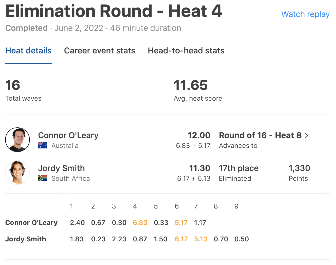 さらにConnor O’learyはイリミネーション・ラウンドのヒート4でJordy Smithと対戦。