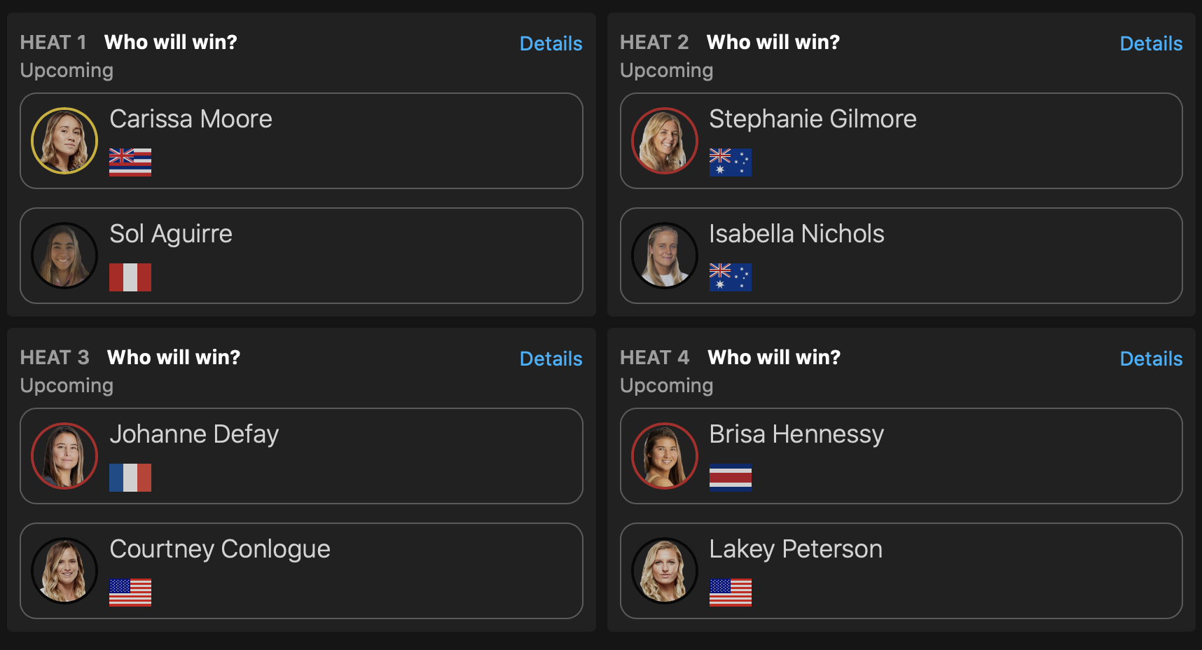 HEAT 1: Carissa Moore (HAW) vs. Sol Aguirre (PER)