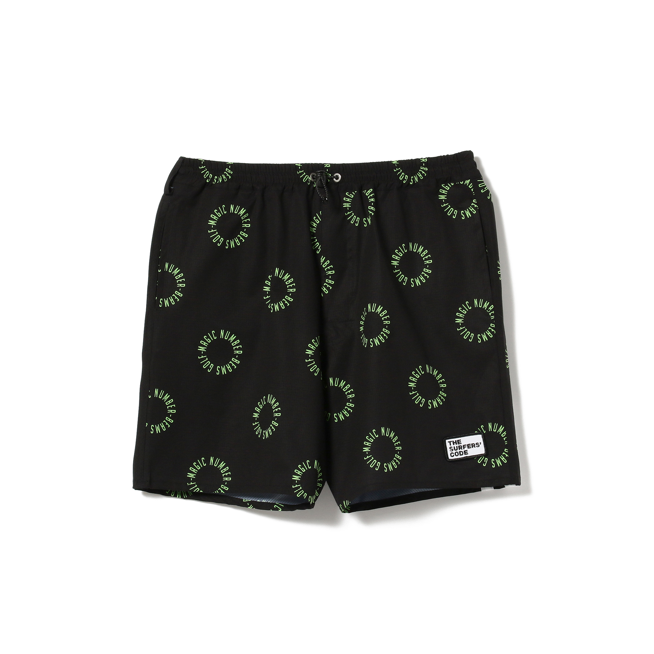 中村がドキュメンタリー映画からデザインの影響を受け、インスピレーションが生まれたサークルロゴ柄をネオンライムカラーでポップに表現。ストレス軽減を目的としたMAGIC NUMBER定番の内股に縫い目がないWALK SHORT。素材は2WAYストレッチで着心地が良く、高通期、軽量、撥水が特徴。