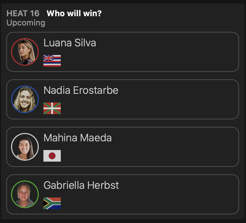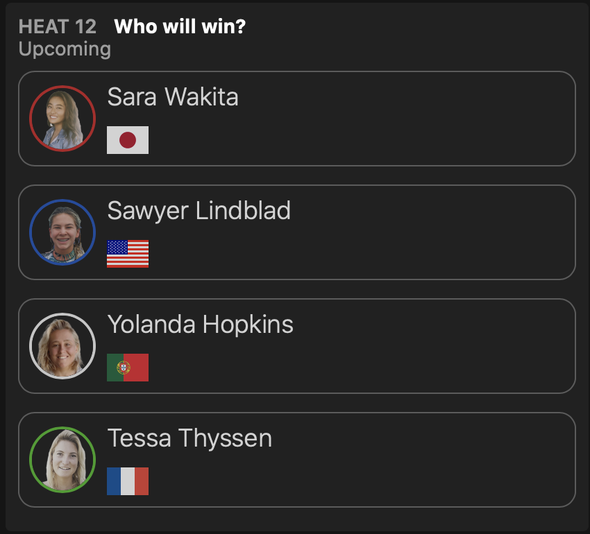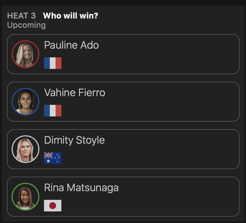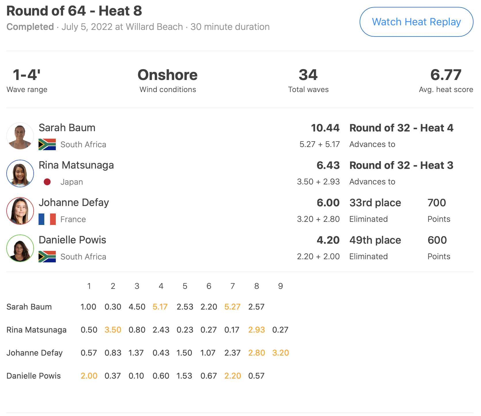 さらにラウンドオブ32進出を果たした松永莉奈はヒート3でPauline Ado、Vahine Fierro、Dimity Stoyleといったビッグネームたちと対戦する予定となっている。