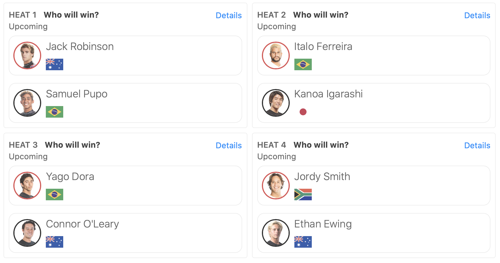 Connor O’learyはヒート3でラウンドオブ16でFilipe toledoを倒して絶好調のYago Doraと対戦予定となっている。