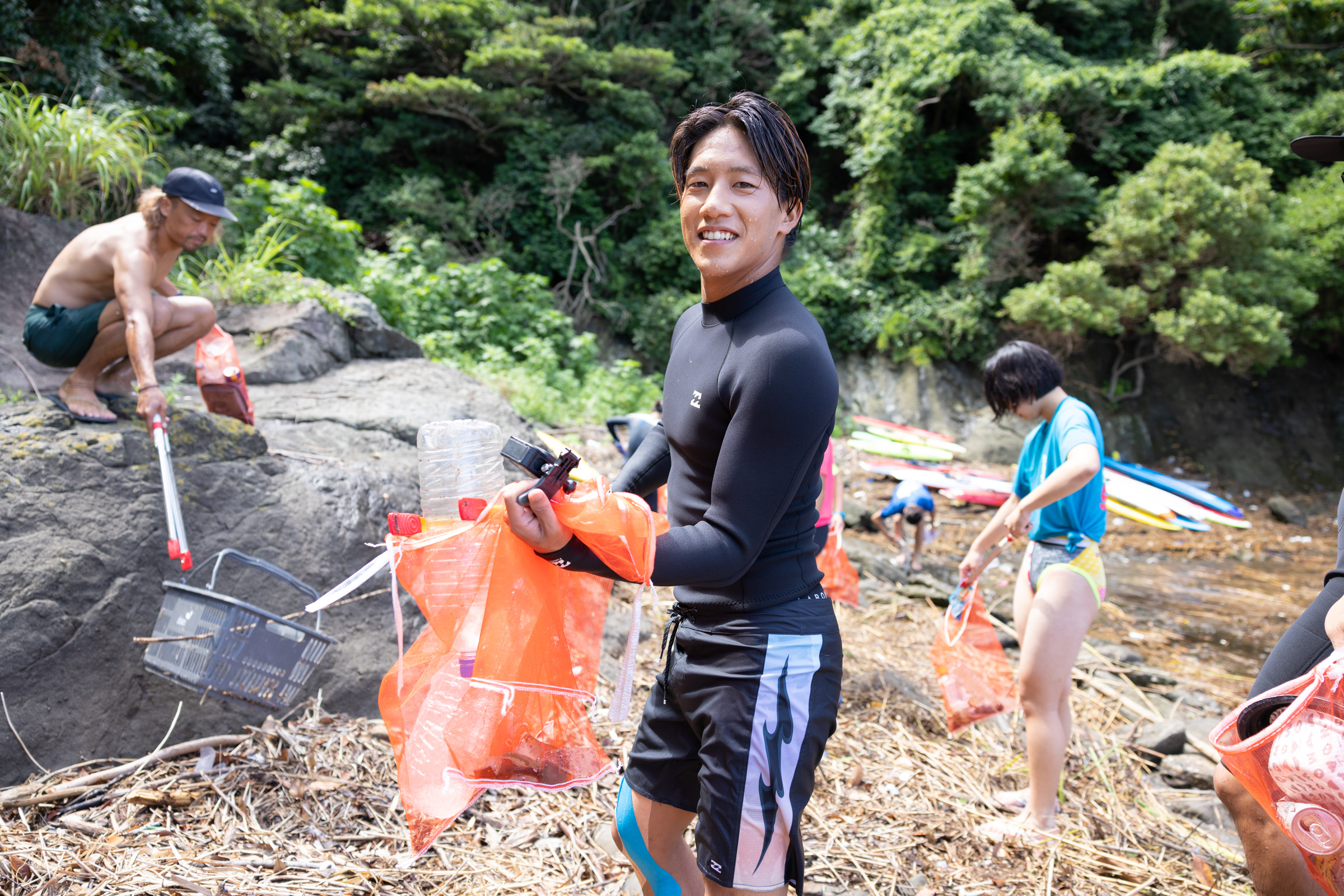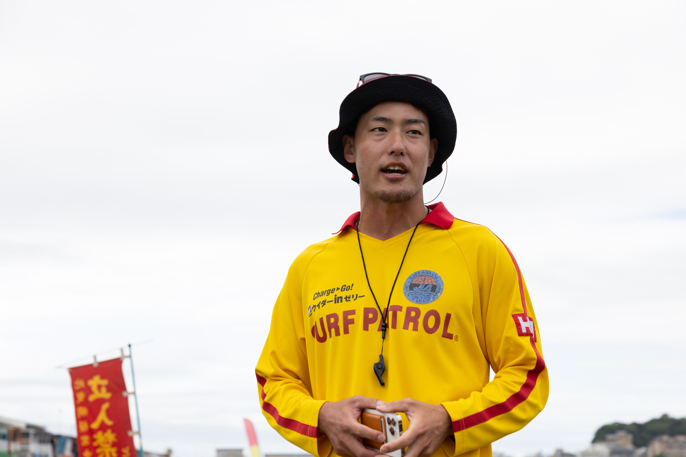 西浜SLSC環境イベント委員会委員長の新井大介さん。西浜SLSCの声がけをきっかけに今回の合同オーシャンクリーンは実現した。「ライフセービングは海岸での認知度は高いのですが、一般的にまだまだ広がりがない。だから同じ海を活動拠点にしているサーファーをはじめ、マリンスポーツをやっている方々との横のつながりを増やしていこうと考えました。そこで協力関係にあったBILLABONGとともにアクションを起こし、発信していこうと思ったんです」